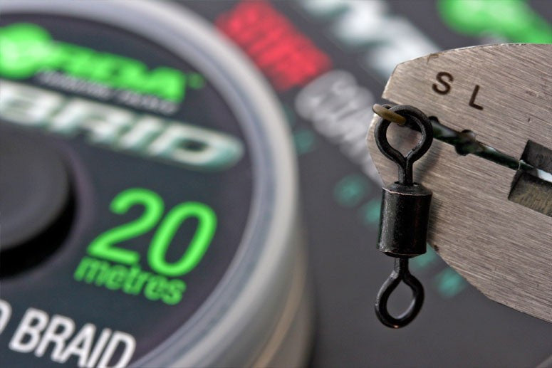 Korda's Krimp Tool makes rig building easier. It is used to make the perfect loops in stiff rig material, coated braided hook links, bristle filaments, and other hook links, but not fluorocarbon. When tying small rigs like chod rigs, it's hard to tie a loop knot by hand, and this is where the Krimp Tool comes into its own. It comes with two different sized crimps, 6mm & 7mm, designed to be used with other hook length materials. The smaller 6mm crimps are used with stiff bristle filaments and coated braids, whereas the larger 7mm crimps are more suited to thicker hook links like monofilament lines over 30lb.