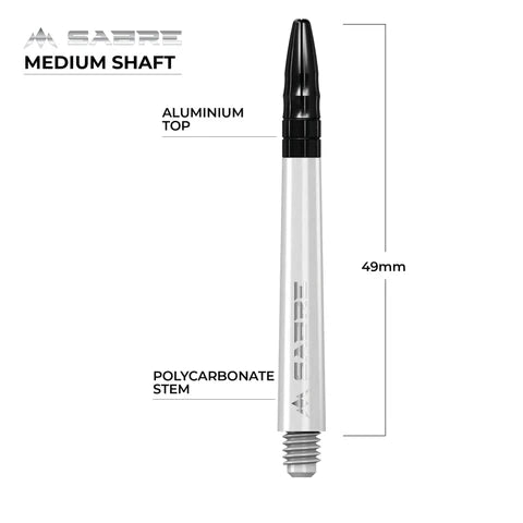 The Mission Sabre Dart Shafts are expertly designed to offer a perfect combination of strength, lightness, and performance. Built using durable black polycarbonate, these shafts feature an aluminium core and fixed tops, delivering excellent flight grip and reliability during play.