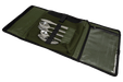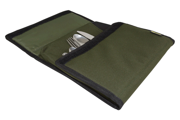 A compact one-man dining set neatly packaged inside the gate-fold space-saving design. The pack-down size is kept to a minimum and can be stored inside most of our luggage range. The set includes everything needed while on the bank. It comes supplied with a square plate, four-piece stainless steel cutlery set, and a bottle opener. The internal clear zipped PVC pocket allows for additional storage and can be used as a base for cutlery while cooking. After use it is easily wiped clean for sanitation.