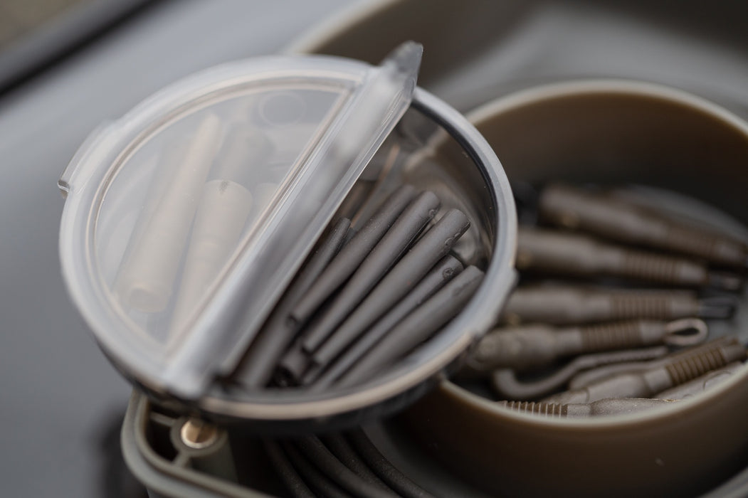 Korda Tubing Box can hold up to 10m of rig tubing and has been designed to hold small tackle items with a removable round storage box.